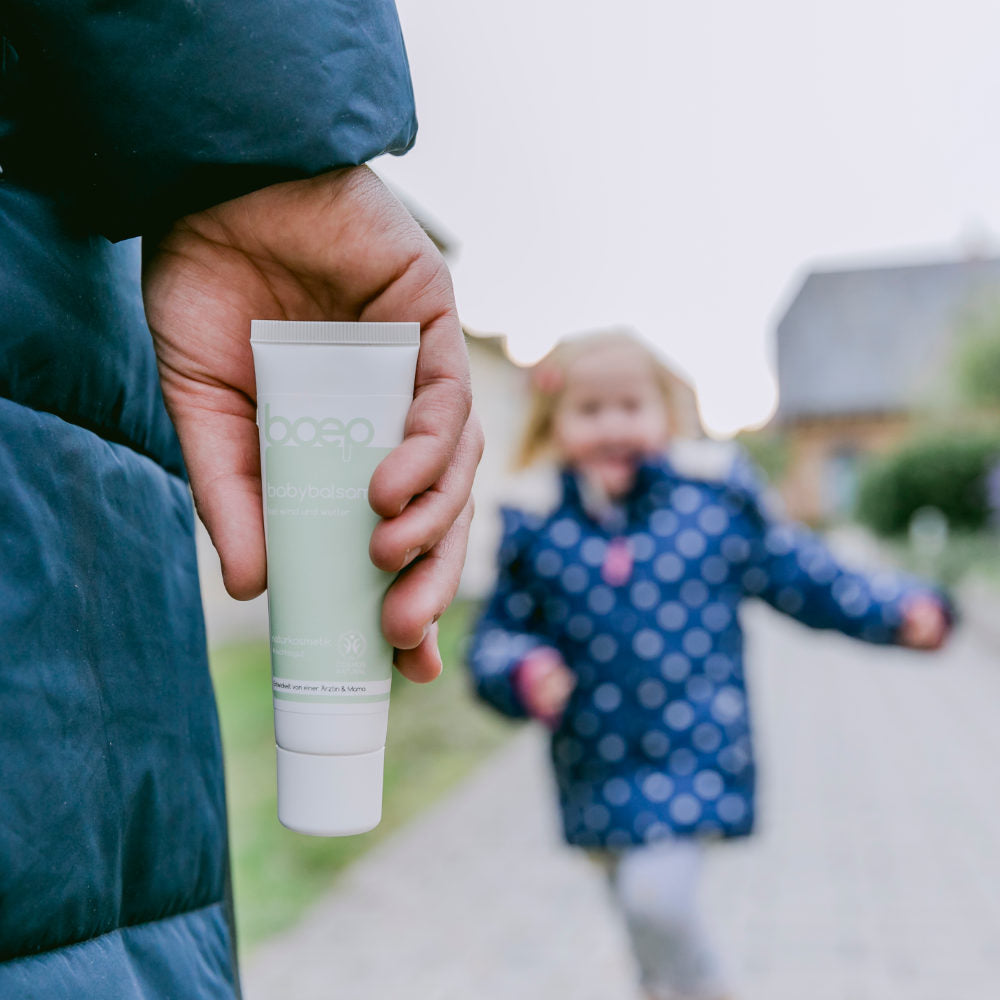 Boep zaščitni balzam za veter in mraz (baby balm) je veganska zaščitna krema za dojenčke, otroke in odrasle, zasnovana posebej za mrzle, vetrovne dni. Njena bogata, a lahko mazljiva formula s kakavovim maslom, organskim olivnim oljem, mandljevim oljem ter oljem mareličnih koščic in izvlečkom ognjiča iz nadzorovane ekološke pridelave, nežno neguje in pomirja občutljivo otroško kožo.